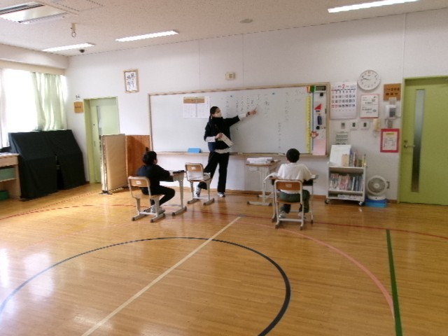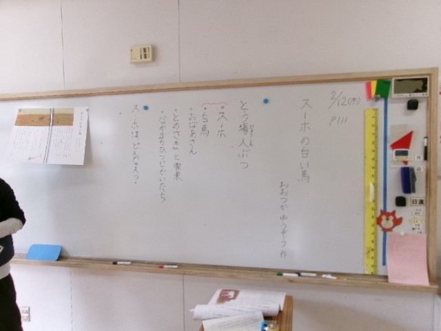けやき学級での学習です。2年生が国語「スーホの白い馬」の学習を進めていました。板書や掲示物もとても充実しています。