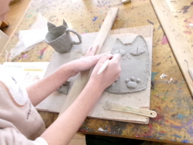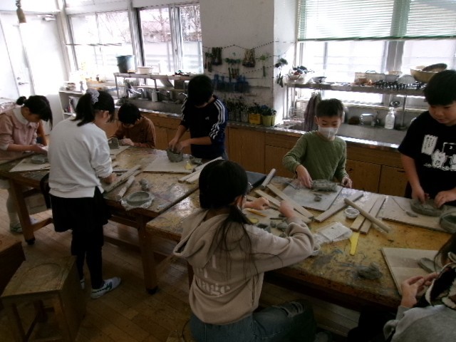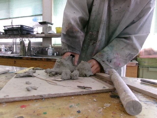 自分が作りたいもののイメージが固まり、実際の制作活動が始まっています。自分の手を使ってみな一生懸命です。
