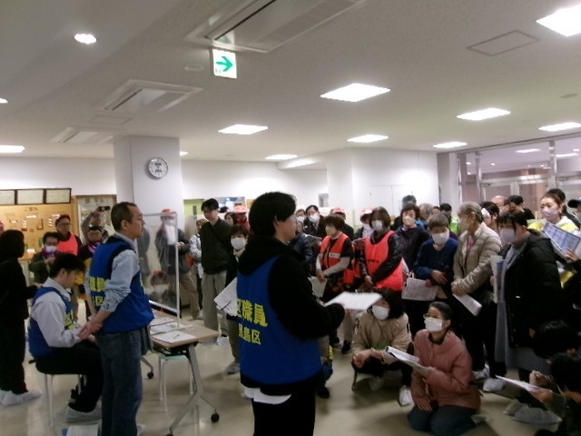 地域の11町会の関係者が集まり、発災の時の対応として、南池袋小学校が避難所になったことを想定して、避難所の開設と運営のための訓練が行われました。100名を超える地域の方が真剣に取り組まれていました。