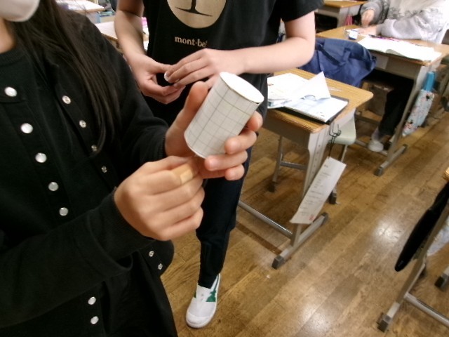 円柱の展開図を子供たち一人一人が作ることを通して、展開図の特徴の理解を深めていきます。夢中になって取り組みました。