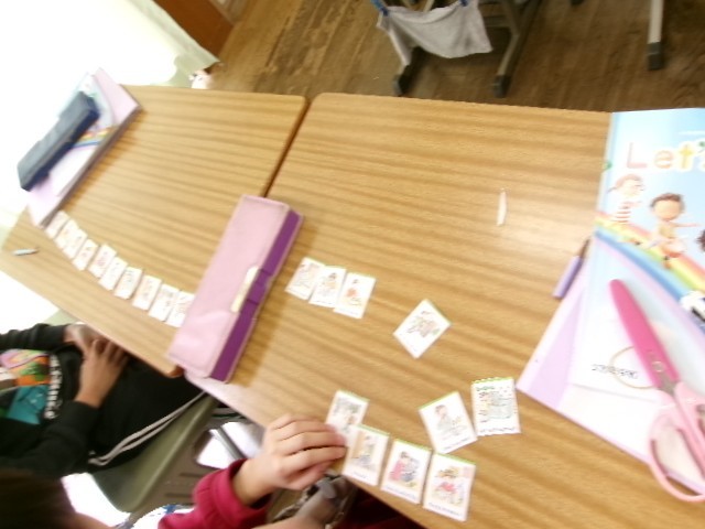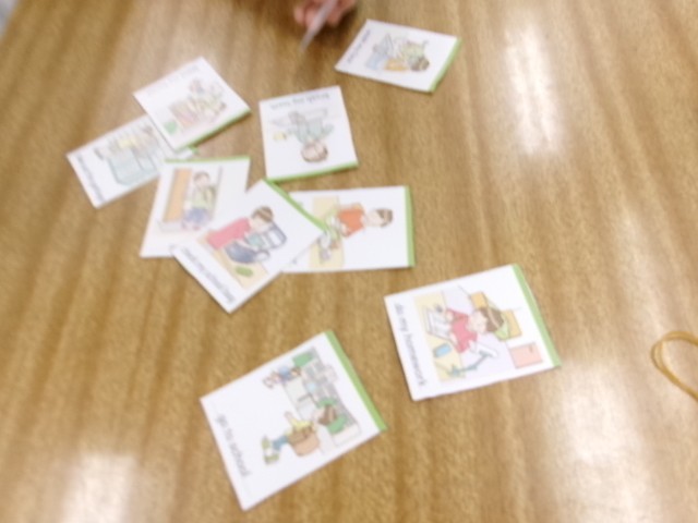 1日のスケージュールをカードを使って整理し、それを英語を使って伝えていく学習です。子供たちの生活の様子も見えてきます。