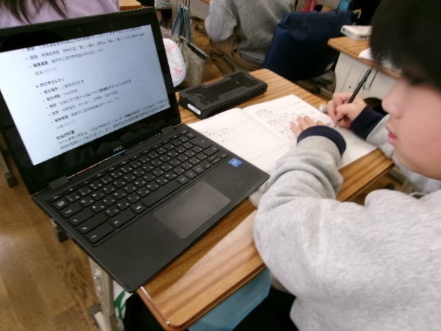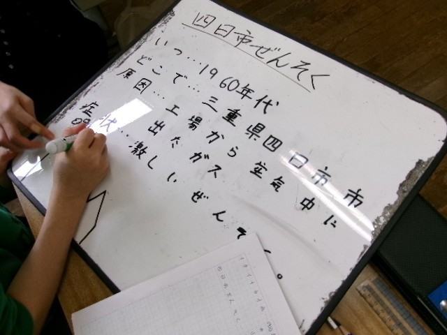 社会科の工業にかかわる学習で、四大公害病について調べていきます。一人一人が資料に当たり、まとめていく学習です。