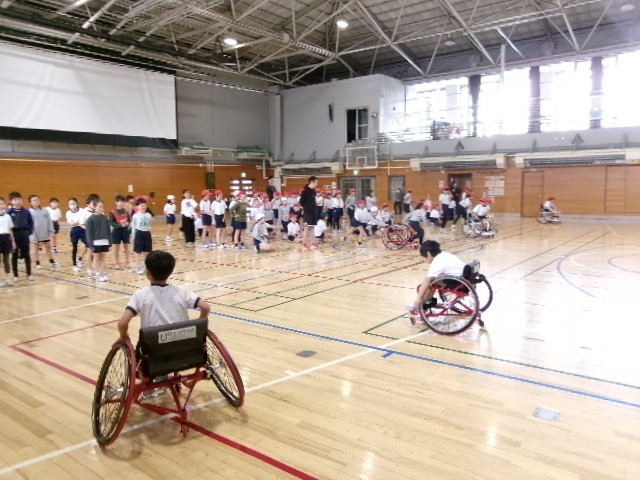 子供たちも、本物のアスリートからたくさんのことを学びました。また、実際に車いすバスケットボール競技用車いすの試乗もでき、貴重な体験となりました。先生方も一緒にゲームで楽しみました。本当にありがとうございました。
