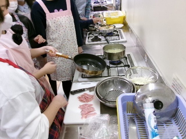 6年生のクラスごとの調理実習が進められています。グループごとに丁寧に計画を立て、楽しみながら実習を進めています。