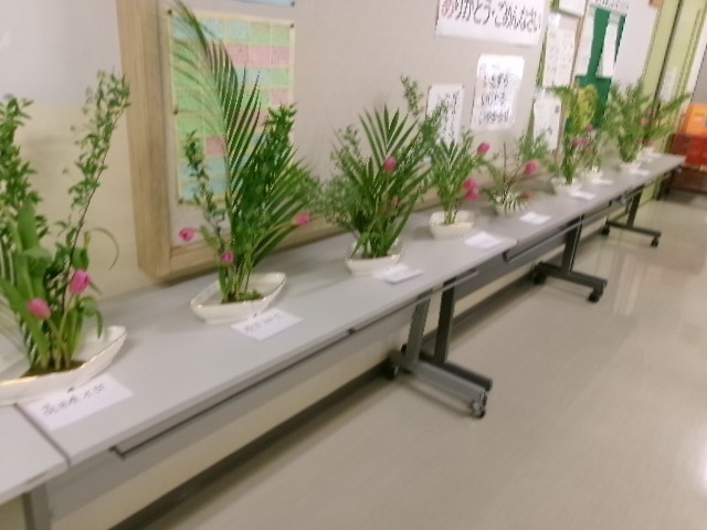 6年生の華道の作品が職員室前の廊下に展示されました。ぜひご覧ください!