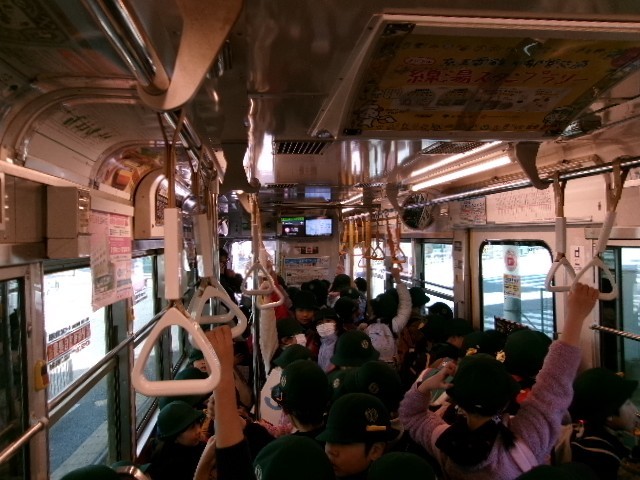 今日は1・2年生が待ちに待った遠足です。天気にも恵まれ、あらかわ遊園に向かって出発しました。都電にも乗りました。
