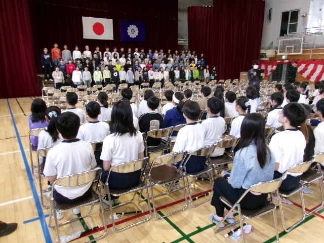 5年生と6年生が合同で卒業式の練習に取り組みました。いよいよ本番が迫ってきました。がんばれ高学年!