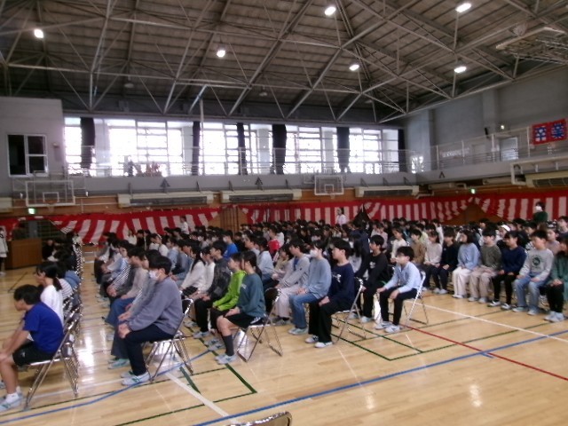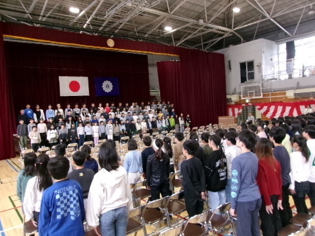 参列する5年生と6年生が揃い、通し練習を行いました。完成度もなかなか良い状態です。感動的な式になりそうです。
