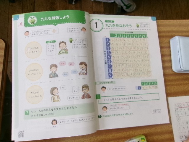 2年生で学んだかけ算九九を、改めて見直す学習です。真剣に取り組んでいます。