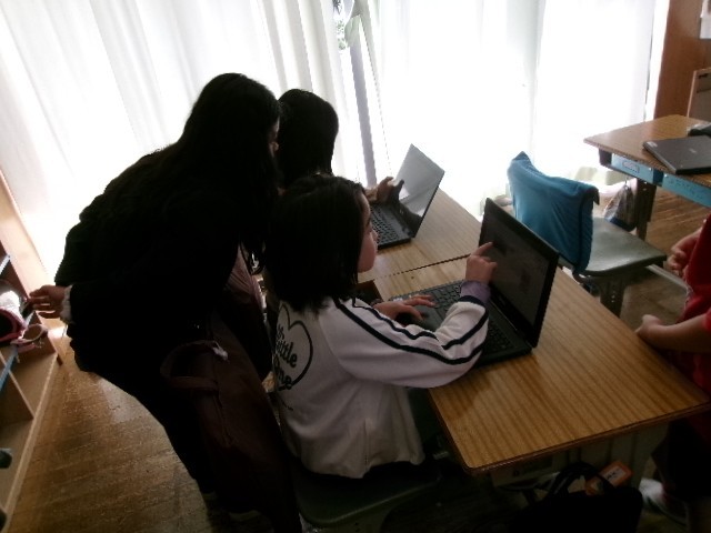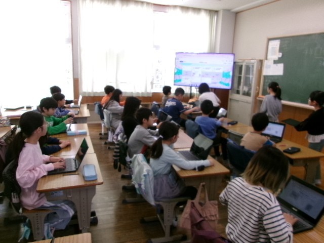 英語の時間に自己紹介をするために、タブレットを使って自己紹介カードをまとめていきました。