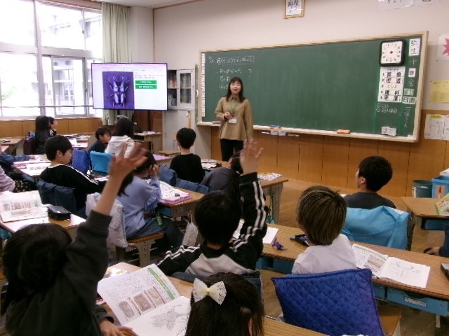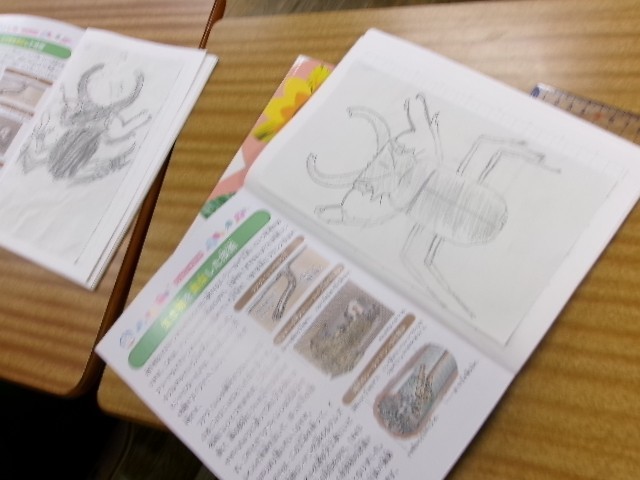 理科の学習です。昆虫の学習を意識して、足の数や胴体の様子にも着目させていきました。