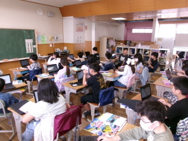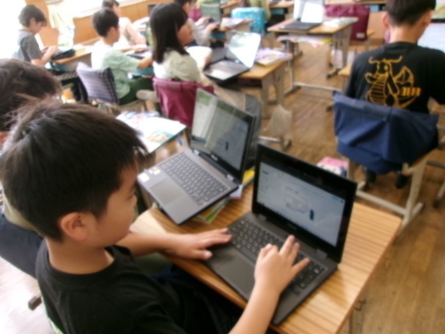 社会科では日本の国土について学びます。今日はタブレットを使って、地域によって気候が違うわけを考えました。予想して、友達と共有して、学習を進めていきます。