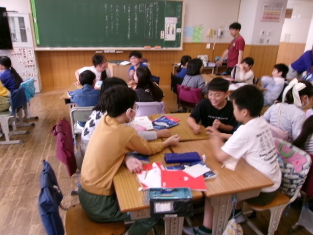 秘密の言葉を設定し、グループのうちの人がその言葉をわからない状態にして、周りの子供たちが質問しながらその言葉を言わせるゲームのような活動です。とっても楽しそうでした。