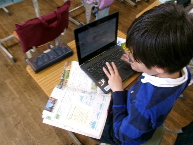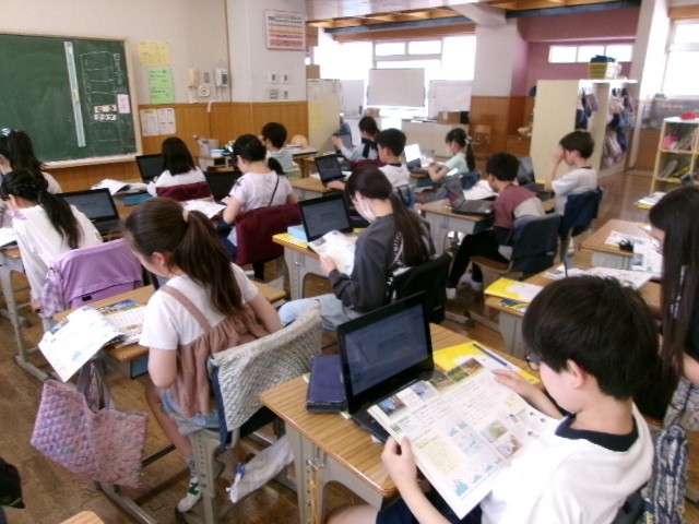 土地による気候の違いを資料を基に考え、タブレットにまとめていきました。5年生も集中して学習しています。