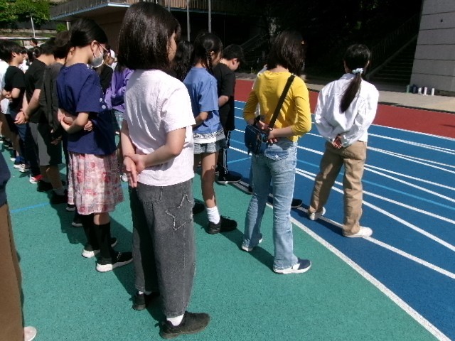 今朝は全校で体育朝会を行いました。年度初めということもあり、体育の時間をはじめ、様々な場面での基本行動様式として、整列の仕方、気を付け、前へならえ、回れ右などを確認しました。
