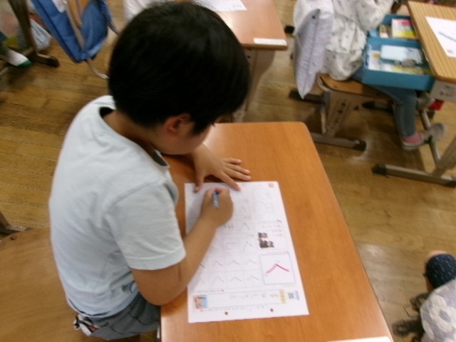 ひらがなの練習が続きます。今日は「く」の字です。上手に書けたかな?!