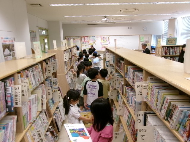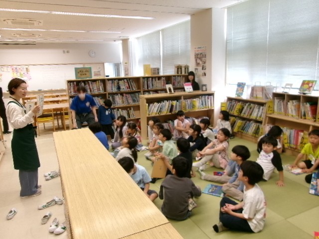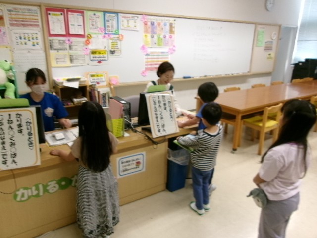 図書室で本の借り方の学習です。しっかり並んで、しっかり自分の名前を言って、借りることができました。司書さんの説明もちゃんと聞くことができました。