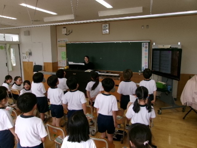 「世界中の子供たちが」の歌詞を見ないでも歌えるように、少しずつ練習を重ねています。声もよく出ています。