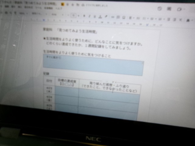 自分の生活時間を見直すために、現在の1日の過ごし方をまとめ、友達と情報交換しながら、より良い生活の仕方を考えました。今後、1週間程度実践してみる予定です。
