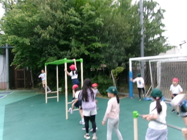 中休みには子供たちが元気いっぱい遊ぶ様子が見られています。今日は3・4年生が体を使って楽しく過ごしました。
