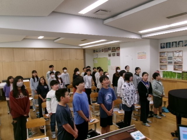 呼吸や声の響きに気を付けて歌を歌う練習です。目指すは「高1の歌声」として、子供たちなりに美しい歌声に向けての練習に楽しく取り組みました。