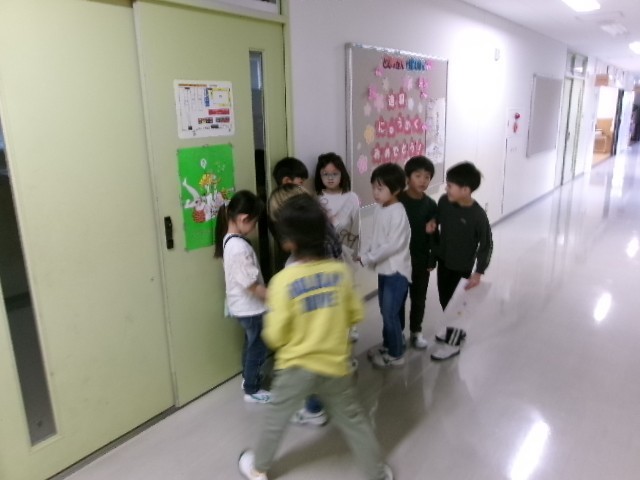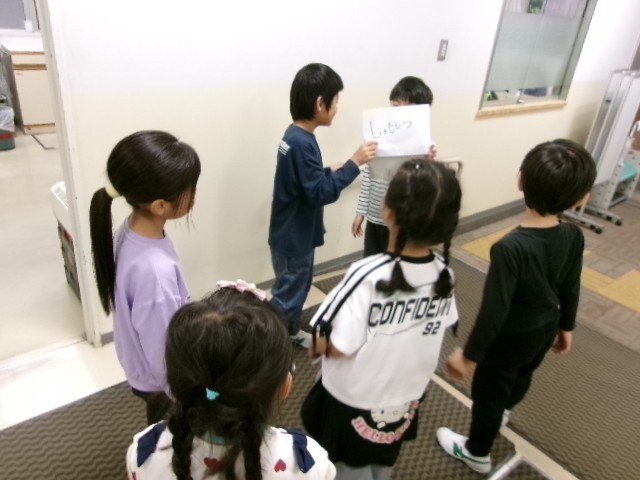 1年生の学校たんけんが行われました。1年生が学校内のいろいろな場所を回ります。その際、2年生がサポート役となってポイントとなる場所に立って、そのお部屋などの説明をしてくれました。とてもよい交流にもなりました。