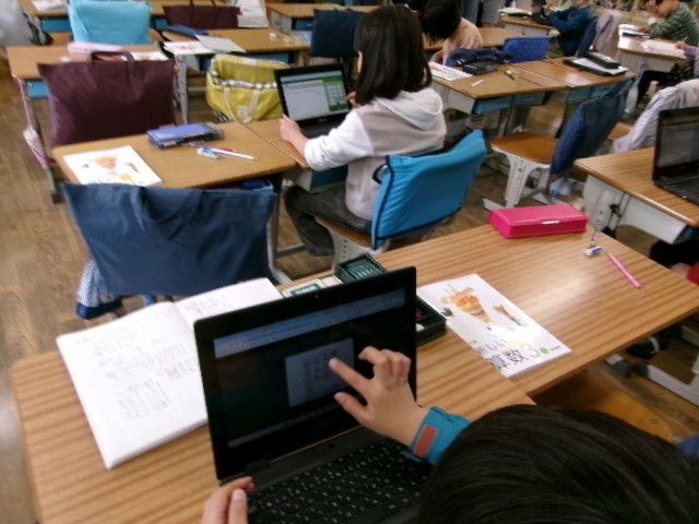 わり算の学習が進んでいます。学級で内容を共有して理解を深めたり、練習問題に取り組み先生に確認してもらったり、タブレットでドリル的に自分のペースで取り組んだりと、課題に応じた学習を進めています。