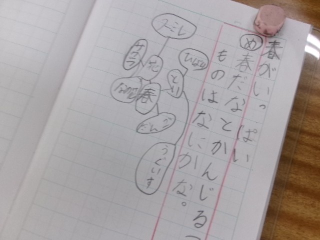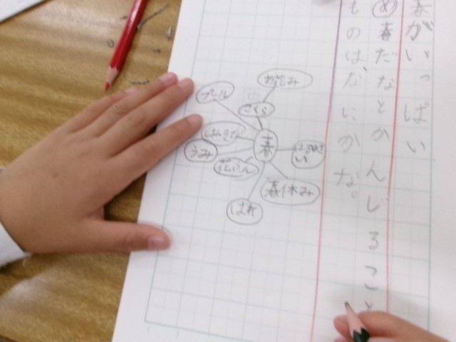 春を感じながら、イメージマップを使って、さらに春についてのイメージを広げていきました。