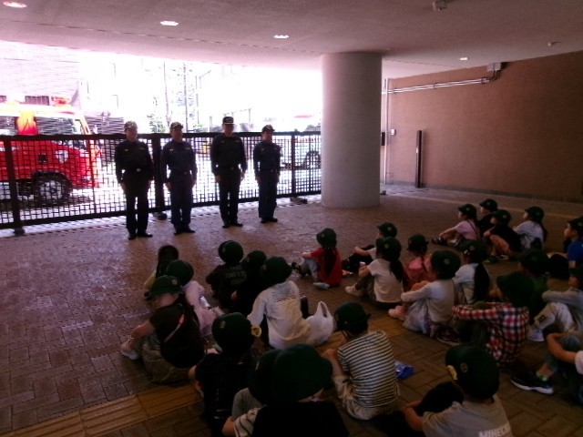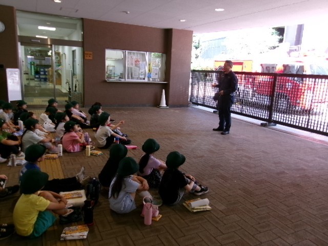 豊島消防署目白出張所の協力を得て、今日は消防写生会が行われました。初めに消防士さんからお話をお聞きしました。