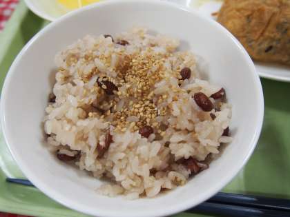 「お赤飯」の赤色は、『ささげ』という豆の色です。“赤”は昔から縁起がよく、災いをさける色とされているため、お祝いの時などによく食べられています。