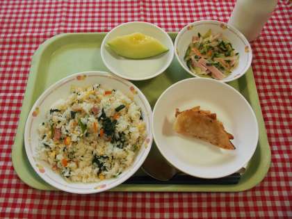 「ポパイチャーハン」という名前は、ほうれんそうを食べると強い人になる『ポパイ』というアニメのキャラクターの名前からつけられました。今日の給食のおたよりには、ポパイのイラストをのせましたが、ポパイを知っている子供はかなり少数でした。。