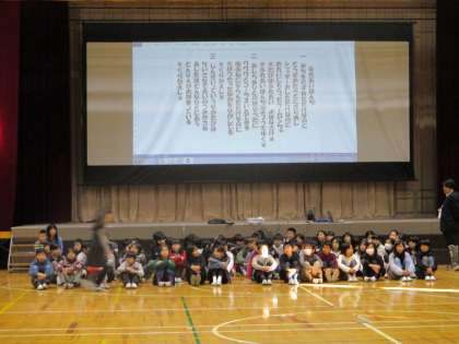 木曜日に2学期最後の音楽朝会が行われました。トーンチャイムの素敵な演奏の音色に聴き入りました。その後、「ふれあいポンチ」の歌を歌いながら、歌に合わせて全員で楽しく体を動かしました。