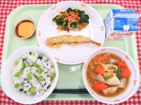 雑穀ご飯(たくわん添え)・さけの塩焼き・切干し大根の煮物・