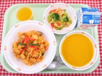 ジャージャー麺・ごま野菜・ナタデココ入りフルーツポンチ・牛乳