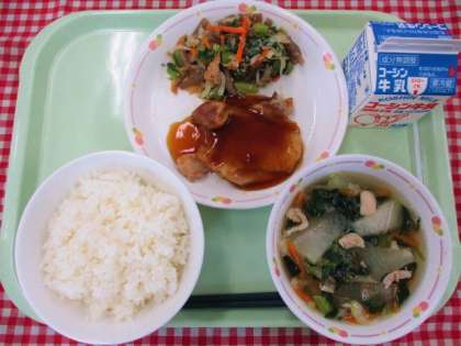 ≪献立≫ ごはん・鶏肉の照り焼き・冬瓜のすまし汁・ちぐさあえ・牛乳