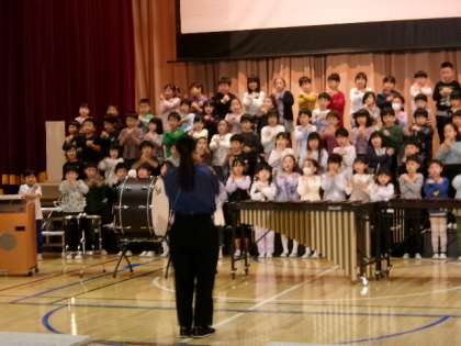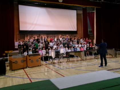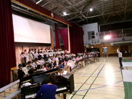 今日は学習発表会のリハーサルの日です。まずは1年生から。3人の担任の指揮により、とてもまとまってきています。