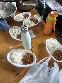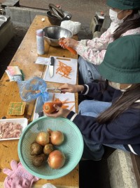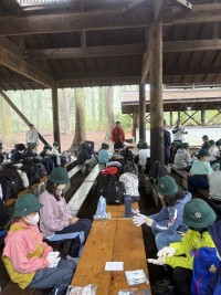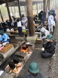 最初の活動は飯盒炊飯です。説明を聞いています。