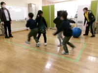 大きなボールに当たらないように体を操作しながら、ボールを避けていきます。友達とも...