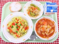 ≪献立≫ ~ハロウィン給食~ メキシカンピラフ・ミネストローネ・もやしとコーンの...