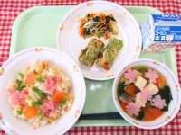 ≪献立≫ ~入学・進級お祝い給食~ 花見ずし・竹輪の磯辺揚げ・花かまぼこのすまし...