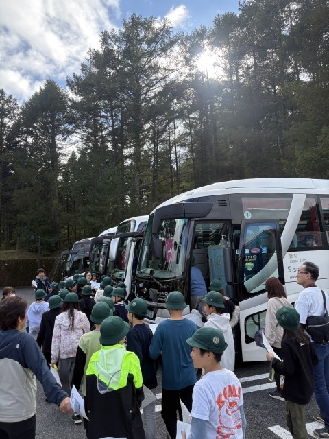 移動教室最後の目的地である富士山レーダードームに着き、まずは記念撮影。