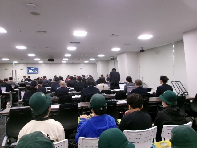 今日の議会は、議場ではなく、議員協議会室という場所で行われていました、後方の傍聴...