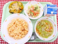 ≪献立≫ ~目の愛護デー給食~ とり肉とパプリカのサフランライス・かぼちゃのポタ...