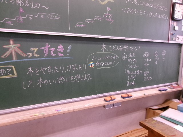 「木ってすてき」という題材の図工の学習が始まるにあたり、気を直接さわって、見て、...