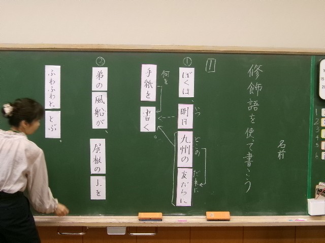 文の構成を学ぶ学習として、修飾語にスポットを当て、どのような言葉に係る言葉かを考...