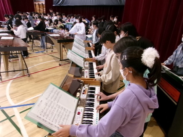 音楽会に向けての学年合同練習でした。一つ一つ細かい部分の指導を受けながら前進して...