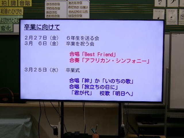6年生の音楽の授業も卒業に向けての活動が始まりました。あと3か月、たっぷり音楽の...