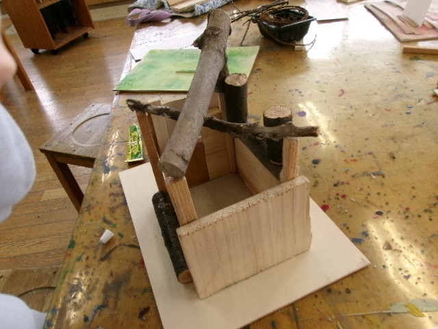 「ひみつのすみか」というテーマで、木材を利用しての制作活動も今日が最終回です。素...