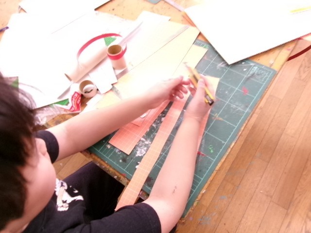 ビー玉の通り道を立体的に作りながら作品にしていきます。今日は様々なコースの全体像...