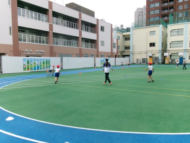 3年2組のアルティメット出前授業の様子です。天候が回復したので、校庭で実施しました。チームで協力して取り組んでいました。